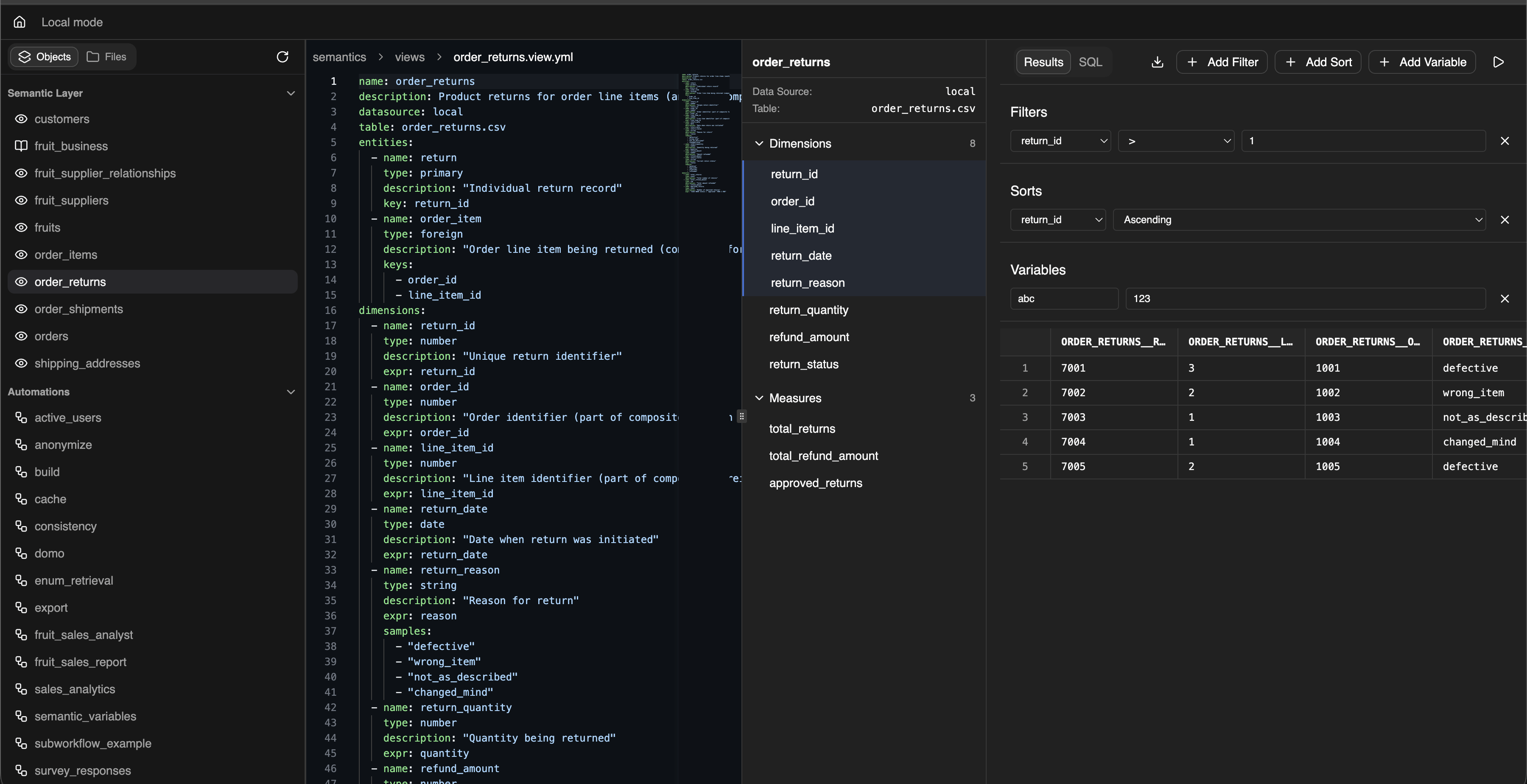 Manual sort criteria management for semantic queries:- Sort Order Control - Add, update, and remove sort criteria directly in the semantic explorer interface