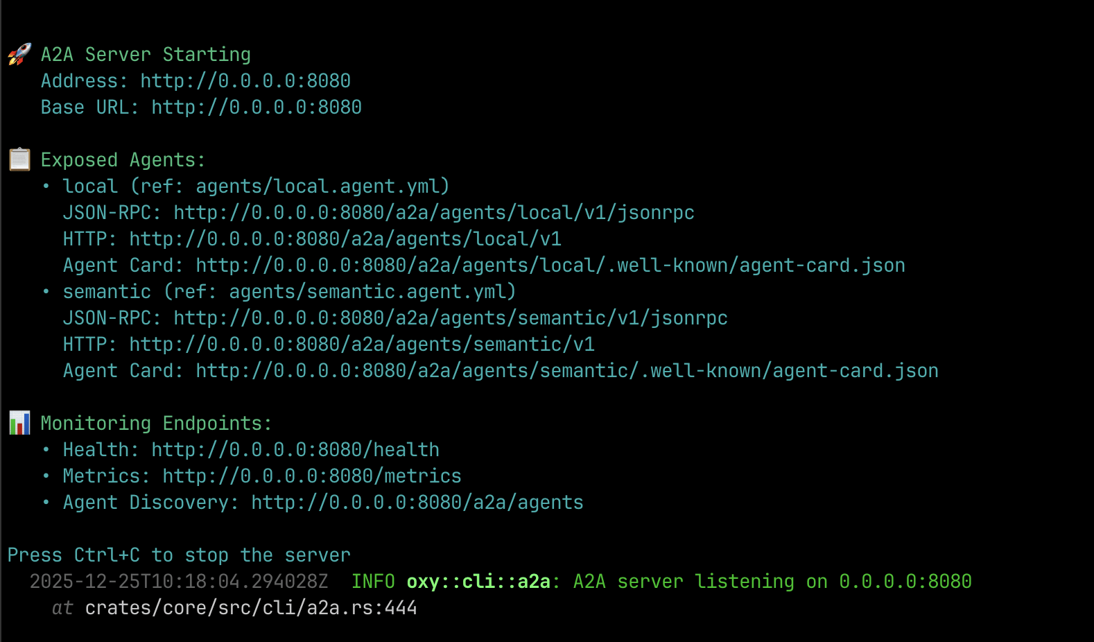 - Agent Discovery - Automatic generation of agent capability cards from Oxy configurations